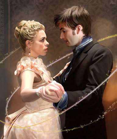 When the Doctor saw the dress the Tardis had picked out for Rose, he was glad he’d done more than just “change his jumper.” She looked absolutely stunning in her pearl-dotted cream satin gown, her gold hair in gorgeous curls. Though, by the look on her face, he didn’t look too bad in his full tuxedo either. He straightened up from the console and grinned. “Ready for your first opera?” He waved the wallet with the psychic paper. “We’ve got our own private box. Figured we should do it up right.” She glided toward him and threaded her arm around his, smiling up at him in the way she had, making his knees suspiciously wobbly. “Now I’m ready,” she said. His grin widened. “Fantastic.”