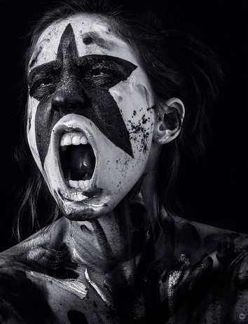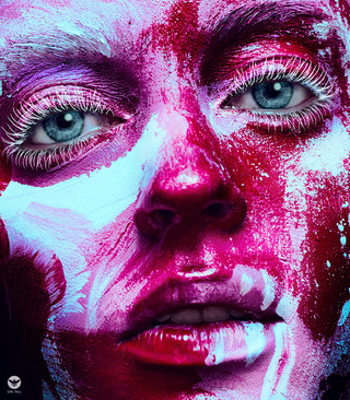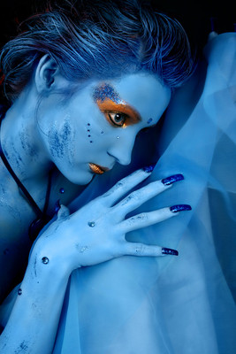 The colors in this picture are lovely. I like the combination of the blue painted skin and the warm brown eyes and hair.