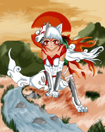 woah.....i like it,the background is nice,okami looks beautiful.....i cant say anything else since after that im speechless.