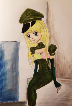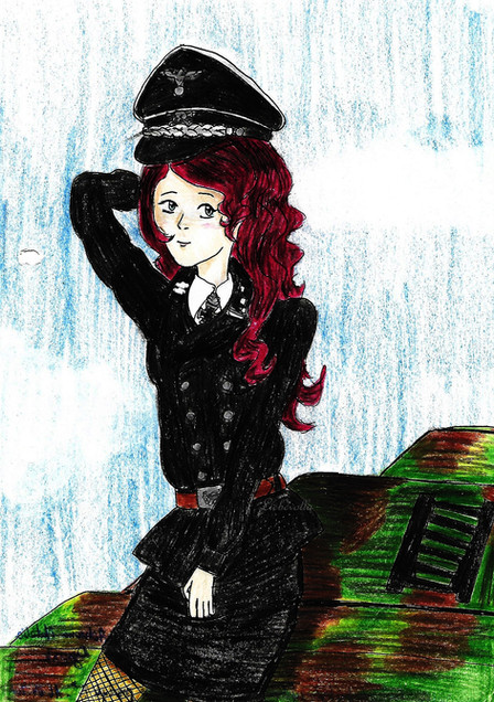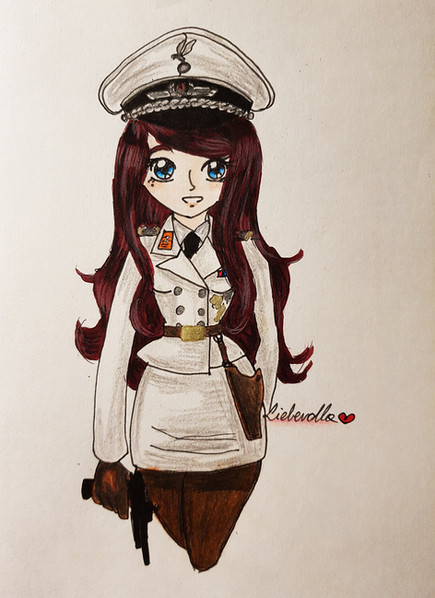 #blondehair #colorpencil #doodle #luftwaffe #markers #natalia #pinup #redlipstick #rednails #skirt #spygirl #traditional #uniform #rawska