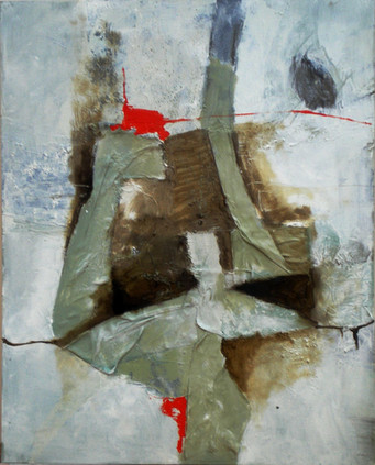 Limestone Dust, Oil, Acrylic, Wax, Silver Leaf, Blood, Emulsion and Ink on Canvas.