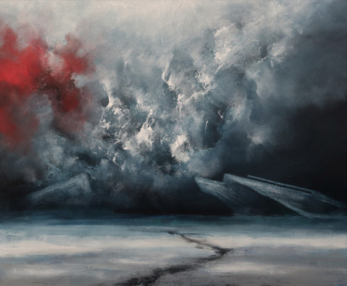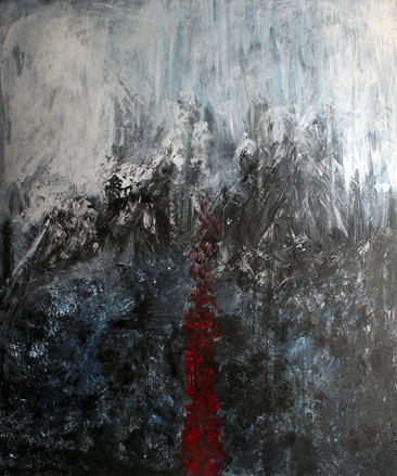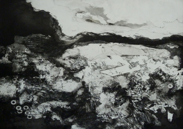 Hard to say why I like this one so much. I see the 4 elements (fire, air, earth, water). May be the reason why despites the dominant color I feel a lot of warmness. I am really stuck by the movement that lets think of the sea but could be also the earth moving. I can't really think about something else in interpretation but it is not missing. I just fell that the right thing is as at the right place for what's happening (Hoping to be clear, at least of for you, cause even in French I should not be very understandable