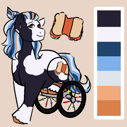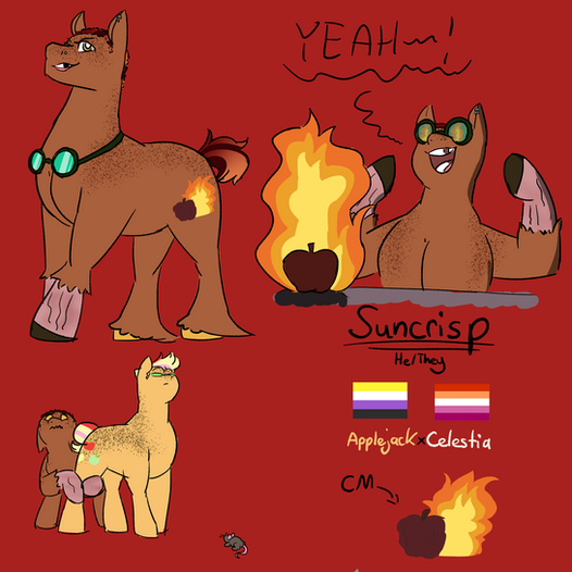 Just a kind hearted country boy. Left the farm as soon as he was able, with nothing but his grandmother’s guitar on his back (and a packed lunch from his mama). He travels around Equestria, playing his tunes to those who will listen. He may be a bit on the thick side and has a tendency to follow his heart rather than his brain, but that doesn’t bother him none. It does mean he falls pretty easily when a pretty, four-eyed face lures him in, however…