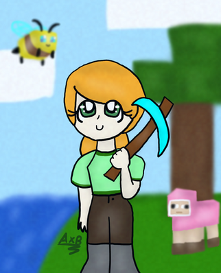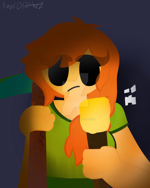 I drew Alex once again ówoI made the texture of the grass block flat, since I wanted this to be a quick drawing. I did experiment with the background a bit, trying to create a pattern with the creeper faces ówo I think its looks neat :> In hindsight, her hair does cover her eyes a bit much, guees I know fo rnext time