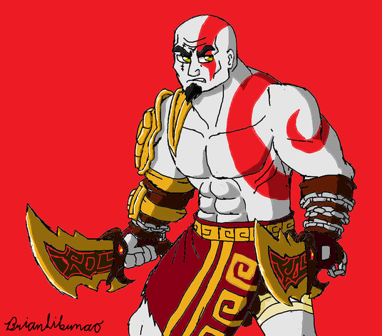 I have been playing the OG GOW games and wanted to draw Kratos! I tried to get some anatomy but, its not as good as I hoped it would be. Also, I have forgotten to draw the rest of his tattoo on his left arm but if Im not mistaken, from this specific perspctive his tattoo on that arm isnt very visible anyways so, I guees its not too badBut I am happy with the colours and all so yeah! What is your favourite GOW game? :>