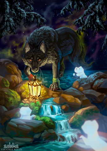 #battle #fantasy #forest #griffin #moon #mystical #spirit #wolf #wolves #askha