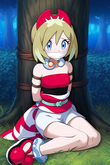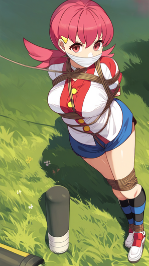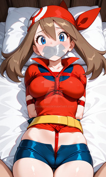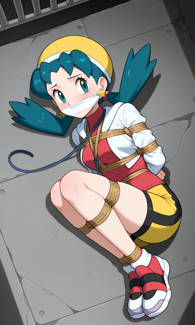 #boundandgagged #cuteanimegirl #pokegirl #ropebondage #aigeneratedart