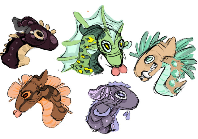 These were originally supposed to be animation-friendly, but lost that quality very quickly.Anemone, Gill, Indigo and Whirlpool
