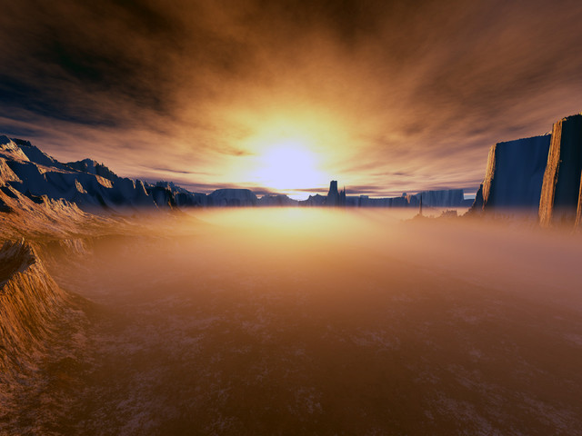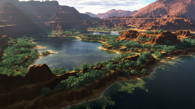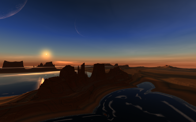 A shot from Mojoplanet 'Las Barancas', built by Armands Auseklis and Bruce 'Pushinfaders' ClaytonRendered with full shadows in ~3 hrs