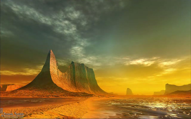 Nowadays I work with GeoControl2, which is indeed a program for creating landscapes. But I render most of my landscapes with TerraGen 0.9.19 - which is a very early version of TerraGen - today in version 4-point-something...