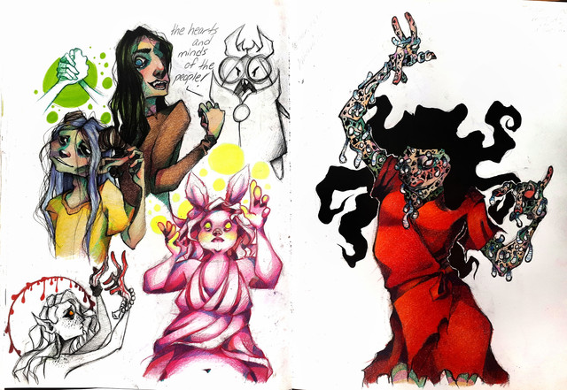 i don't remember drawing this but i know i did because the character is my god and only i can see himone of his hands is good, one is bad