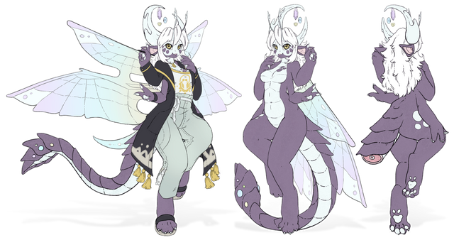 Then I noticed I couldn't do it without redesigning her, something I was really afraid of doing, but since my ideas for designs and markings also has changed in the meanwhile I needed to try it... So I finally have tried redesining her! The changes are not much yet I feel I love her way more now! She also got this new official clothing to fit better her new look!
