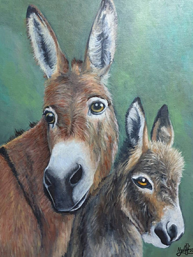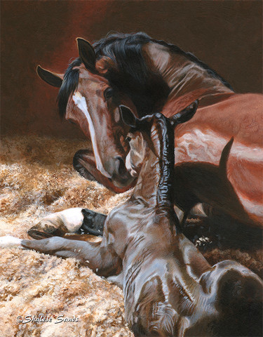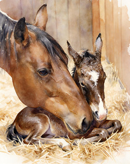 I made an acrylic painting of a mare and her foal from my family's property. Fizz was born not long before the photograph that inspired this painting was taken.Related content