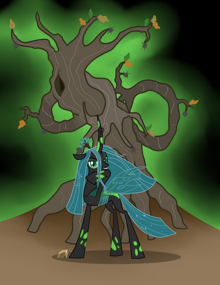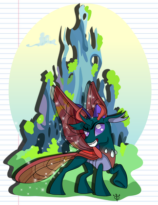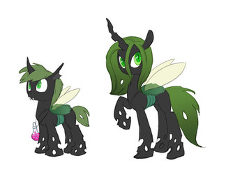 I always thought the changelings needed ore than 2 basic designs. For here if anyone wants to make a handling OC, I think it's best to do what you did. Give it cool colors in the mane, keep the holes in it though. Give it a dark finish, keep the coat color the same, (so it doesn't get confused for a pony) and overall just be creative. This was an great design fora changeling OC. I hope other that want to make their own changeling OCs follow this as an example