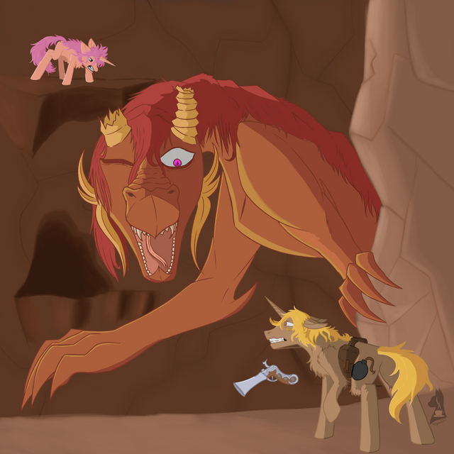 Last time we left off, Silver Quill attempted to help Science out by fending off the Yeti, unfortuantly the hippogryph bit off more than he could chew, and vicious clawed in the face and thrown from the train! The Yeti has now turned on Silver Quill and the young unicorn mares Keyframe and Eliyora, and the brave and injured Silver must protect them from a vicious mauling by herding them to safetfy! Alas the Yeti is hot on their trail as they gallop for their lives! But what's this? Science appears to be conjuring an object using a very powerful spell! Is that a locomotive? What does he intend to do with that? Find out next time!Part 14 -
