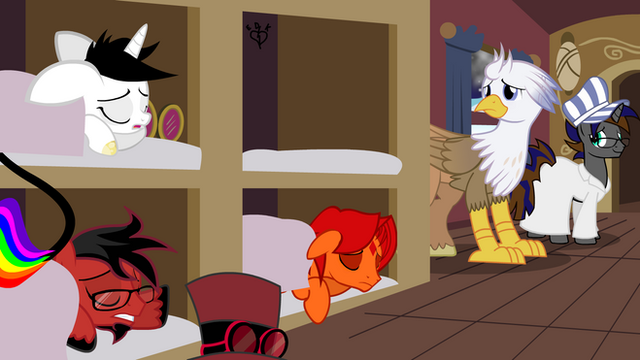 Somebody break out the knitting needles and yarn, 'cause the OCs are gonna need warmer clothing if they're gonna keep going forward! Some soup can't hurt either; I would recommend a nice mushroom and vegetable soup, since ponies can't eat chicken (Silver should count his blessings on that one, otherwise they'd be putting him in the cooking pot).
