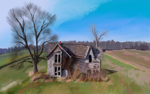 Another attempt at understanding color theory. Trying to recreate the reference image. Some shados look scuffed because I couldn't blend them properly. The initial blocking took quite some time and I realized the house wasn't in perspective, like the reference lolTime: ~2 hrs