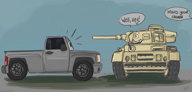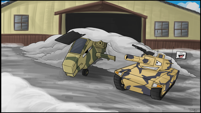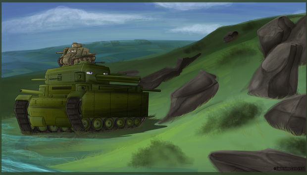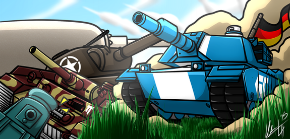 Ahhh! He's gorgeous! Your picture enchanted me so much, the tank, colours, and flag... ^^ He looks so proud, thank you Cato! I'll send my part of art trade as soon as possible!