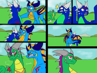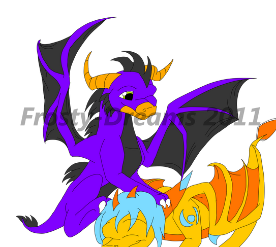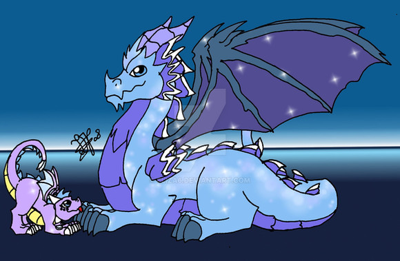 The adult dragon was originally supposed to be a great-great uncle of 's character Adele, but at the same time, I don't consider him to be due to obvious reason.The little one here was originally going to have similar colors to his dad, but changed it to give it a little more of a mix of both dragons, Flare and this male adult dragon.