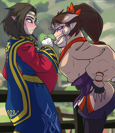 With his new name, Arden lives with his life smoothly in sharing his love for literature and studies with his kind Aunt, Pali like a teacher and student-like bond, but does not share Pali and Clara’s love or interest in other races’ culture. Nonetheless, he wishes to make a difference for his people, improve relations with the other races, and help advance Rito technology. While he has this ambition, he would still start off studying to become a mediator or adviser for the Chieftain, but he is not in a mindset where he desires to pursue being a second-in-command in leading the tribe. He later studied to learn how to build contraptions and create little to medium-sized statues so he can later paint them for the convenience of others. He is not without perfectionism and tends to be stressed when something doesn’t go his way in the case of crafting. Sometimes Arden has an interesting way of speech, often almost euphemistic and poetic in what he describes, similar to Jacque.