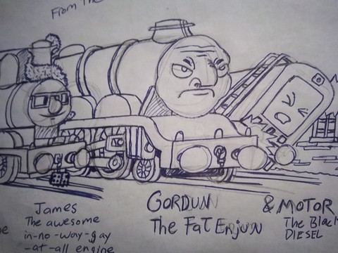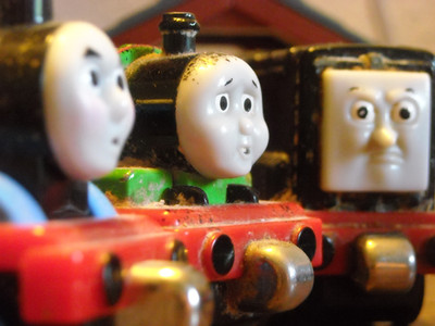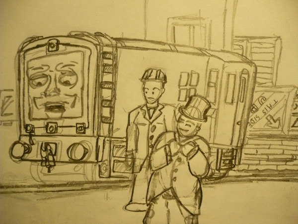 Basically a railway-related doodle. Engine no. 7's been diverted onto the wrong line and has come to a low, impassible bridge. Lorry drives over the bridge. That's basically it.I know it's not as fleshed-out as it can be, but I hope you enjoy anyway