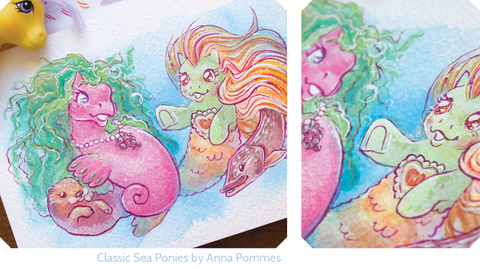 NightLight's mane has the same blend, but I added highlight and lowlight colors for depth. For the yellow (electric banana) section of hair, I added butter creme hair to calm down the bright ness. For the Luck Clover section (green) I added a hand-blend of Bobby Blue and After Midnight low lights for contrast.