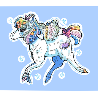 Skirt is completely removable so painted moon and star symbol can be admired by the customer, and the skirt has 3 different colored pastel zippers sewn onto it to compliment NightLight's original hair blend.
