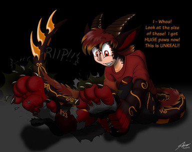 #beast #behemoth #change #fantasy #feral #final #fox #horns #hypnosis #large #lightning #male #mind #moon #paws #red #solo #tf #transformation #foxlightning