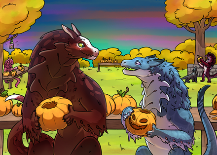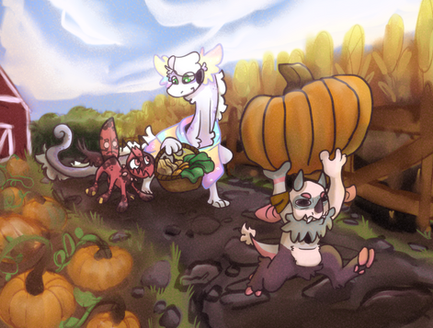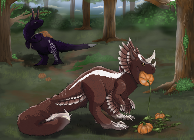 Odyssey and his mate, Eggplant , on a pumpkin harvesting "date". Autumn is their favorite season.________________________