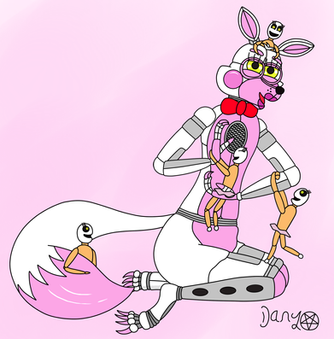 Nah, you'd have to watch the video. I'm still highly confused by it too. Cuz in the FNaF MC RP channel, Foxy is a boy with a big crush on Lolbit, whom he's about 98% sure is Foxy Jr. and Mangle's mom. Yet there was another episode where Puppet claimed he made a clone of Foxy, and the only way to test that was with a machine. The machine exploded, leaving a 50-50 clone between Mangle and Foxy Jr. So, yeah... I don't know, but the RP family tree is still confusing. And apparently Baby is also related to Funtime Foxy and Balloon Boy is Foxy's son.... Meh... I'm just going to leave it at that.