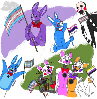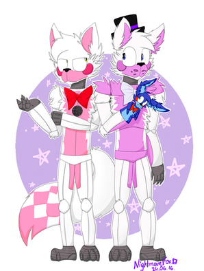 So, Funtime Foxy is a boy and he was dragged into another world by Mangle and Foxxy, who think he's their dad. And then there's the possibility that their mom is Lolbit, but the girls look and act more similar to "dad" Foxy.
