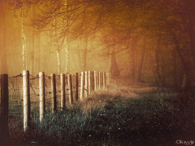 The fence leads your eyes in and the trees downward, which leaves the viewer focusing on a good place. I don't quite know yet what I think of the color tones. Too dark, perhaps?