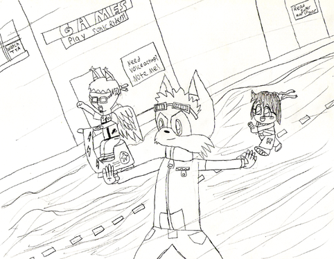 Bios: May and Fey represent fangirls, and they are the main victim characters in my little comic, because I HATE FANGIRLS!!! (Some are okay but stop with the obsessing!) And Trey is the odd boy out, being a fanguy (There are fanboys that act just like fangirls and I hate them too!) so all three complain about their favorite couplings and suh and sometimes I gotta blast them to get them away. Yeah, Fey was in fact inspired by Maya Fey, if you've played Pheonix, she goes fangirly over the Steel Samurai show in episode 3 of the game...