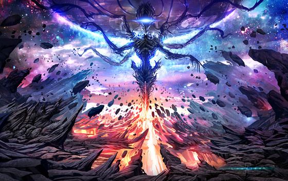 I figured since it probably has built up quite a collection of stolen data, it'd be fitting to have it form a happy twinkling starfield inside its bottomless maw.