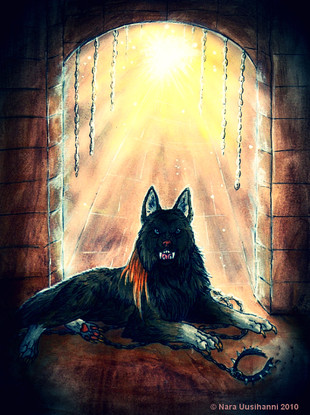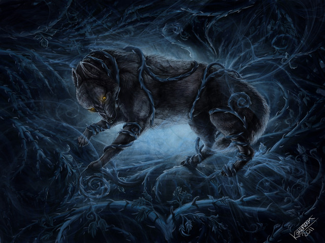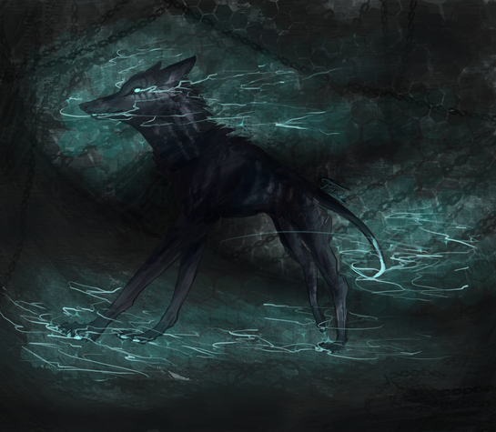 An illustration for Android: Netrunner by FFG that I did at the start of the year.Grim was to be depicted as a dog-shaped 'hole' in cyberspace. I have an interesting job.
