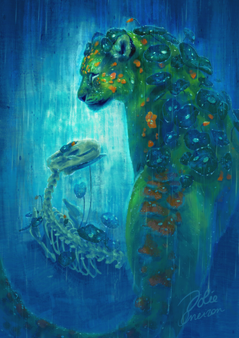 This little bundle of sass was drawn for Android: Netrunner in 2017. It's based off an African civet and caused the players to have a merry old time debating whether or not it's a raccoon. In the game it's the cyberspace avatar of the runner Kabonesa Wu, so sass was absolutely mandatory.