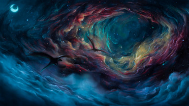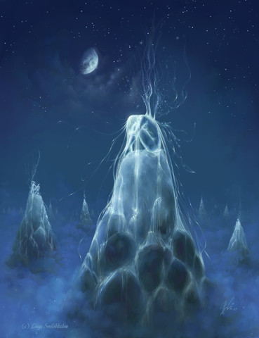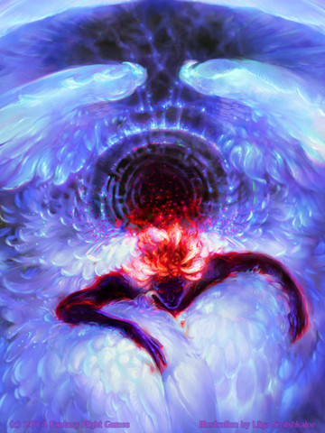 Another illustration for Android:Netrunner from Fantasy Flight Games. This one represents an hourglass floating in cyberspace, its ends turning into swirling storm clouds. Since things from cyberspace should have a dash of surreal to them, I made the lower half (from this perspective, anyway!) more like the clouds we see on Earth and the top half more like something that might be found twirling around in open space. That along with the impossible perspective was a lot of fun to work on.