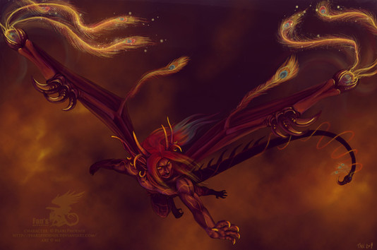 Gah, those wings of his are gorgeous! I need to learn feather painting from you. ^__^