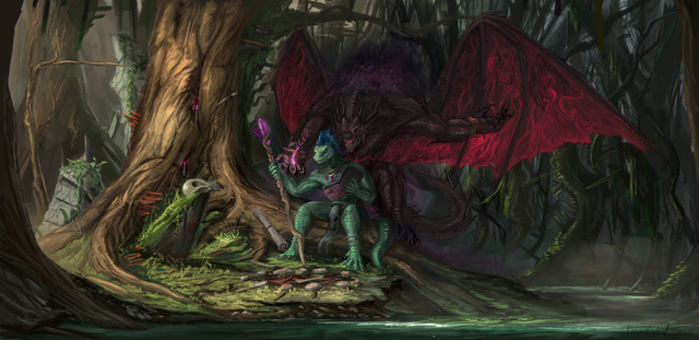 I love the birdman sort of look your shapeshifter character's got going there. Very beautiful and serene.