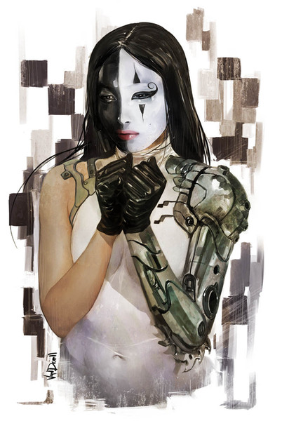 No, there is no explanation. I've had a slight artist's block for a few weeks now, and got my copy of Exposé 6 a few days ago and looked through it and WHOOSH! Inspiration hit.I had that particular pose in mind from the beginning, but it was tricky to find or shoot a ref, so I pulled out my dusty copy of Poser 6 and (mis)posed a figure, then threw it into Vue d'Esprit 4 and rendered for reference. The result was absolutely godawful , but it was still better than nothing. After that it took 3 days of scribbling with Painter 9 and Wacom Intuos and there you have it, in all its incomprehensible glory.