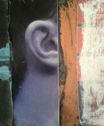 14x14cm collages on woodmessing around with magazine adverts.