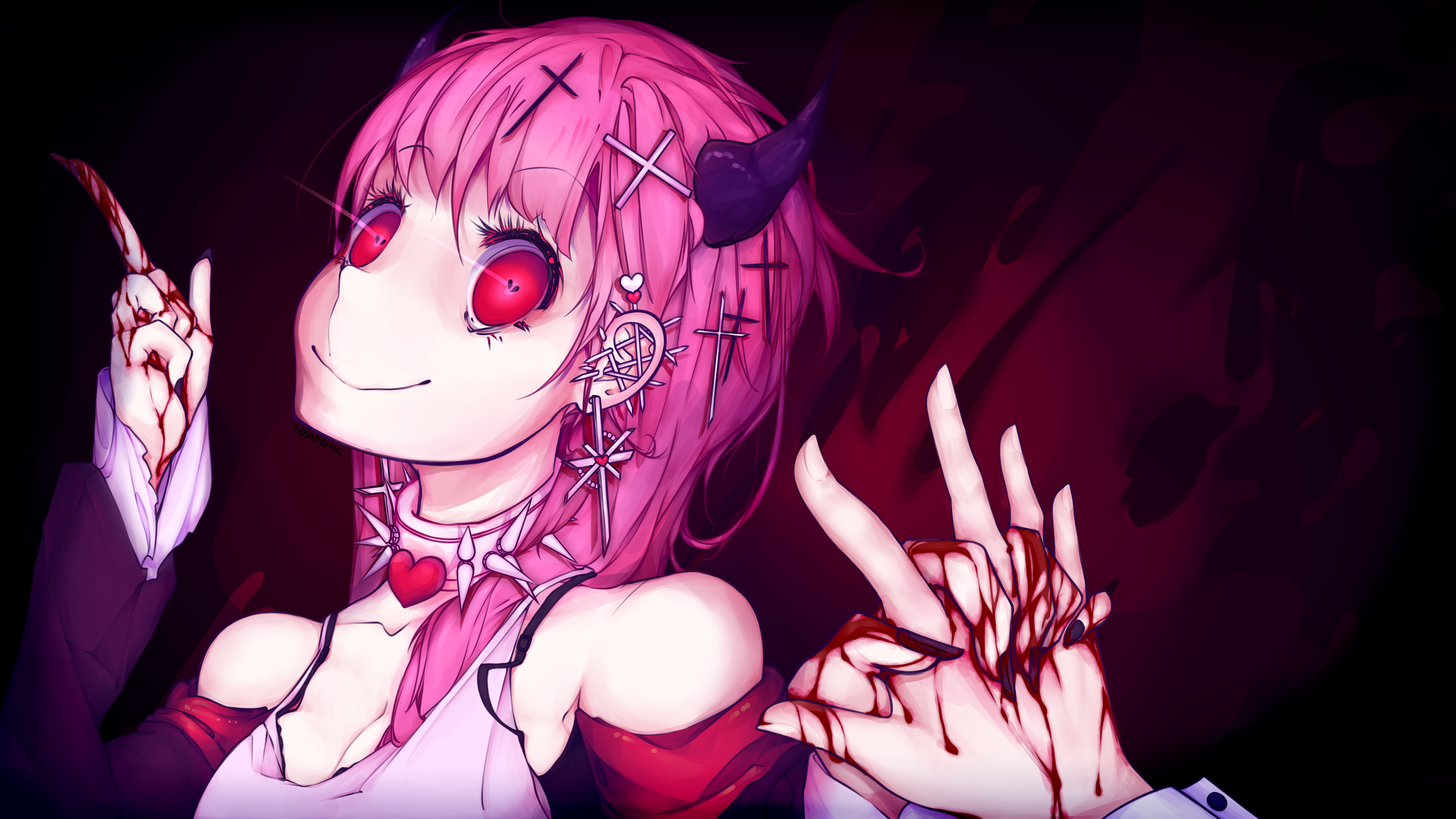 ame mucho su expresión y el tono del rojo para la sangre y sus ojos ; w ;