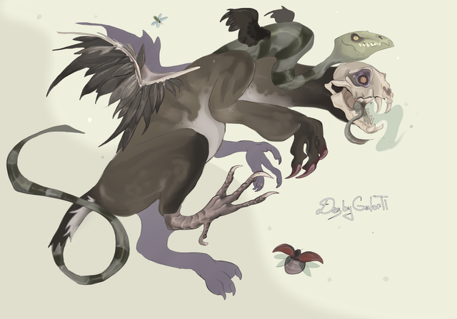 Not exactly so, just when I was drawing this drawing, I realized that the same species cannot have completely different anatomy (the absence of wings aka additional limbs and any kind of cover). It is difficult to call her a "100% gargoyle", given that they have contrasting canons of appearance...and...em...build? x) It started to tickle me. But, as I wrote, she is a "gargoleceos". And I will not come up with a new species for her x) This will all remain in their local prehistoric times like the rest of the extinct species there. So, she's a "one-off species" here.