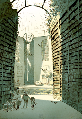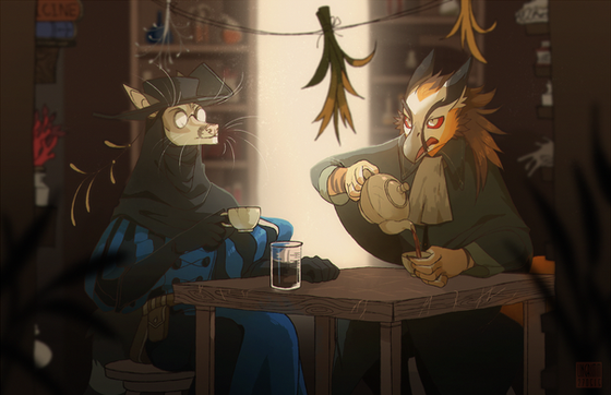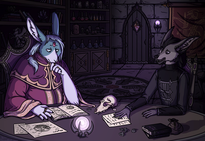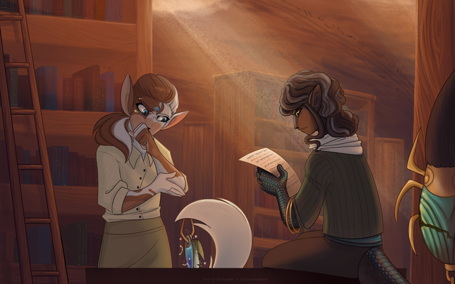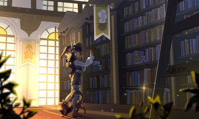#anthro #cartoon #cartoony #cellshading #chibi #creature #cute #fantasy #furry #illustration #library #monster #plant #scenery #scenic #style #stylized #wolf