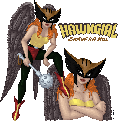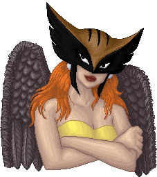 Cuz I doubt she'd keep the JLU outfit all that long but not really sure what she'd trade it for... probably something way cooler than my lame design thoughI know she dropped the whole Hawkgirl thing after Starcrossed, but in my ficverse she's still with the League fighting alongside Warhawk who did take up the Hawk mantle, so was kinda thinking even if she's not Hawkgirl anymore, maybe have the bird of prey thingy to keep the theme going with her little sidekick LOL...