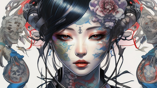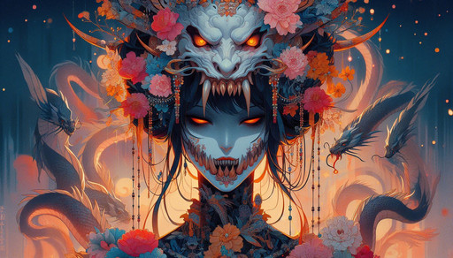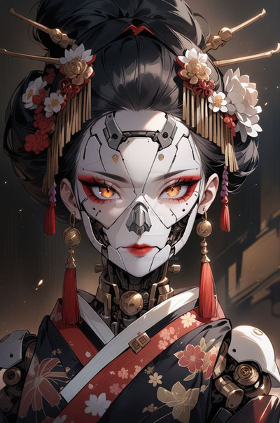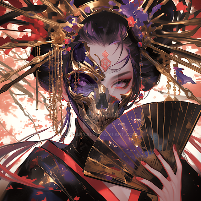 #ai #mask #animestyle #beautifulgirl #digitalart #digitalillustration #japaneseclothes #redeyedgirl #skeleton #wallpaper #ai_artwork