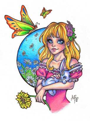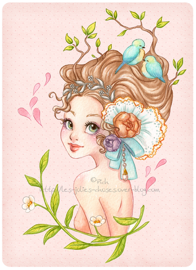 #cherry #colorful #fish #flowers #fox #green #nature #pink #sakura #tree #birds #bright #girl #illustration #princess #spring #swallow