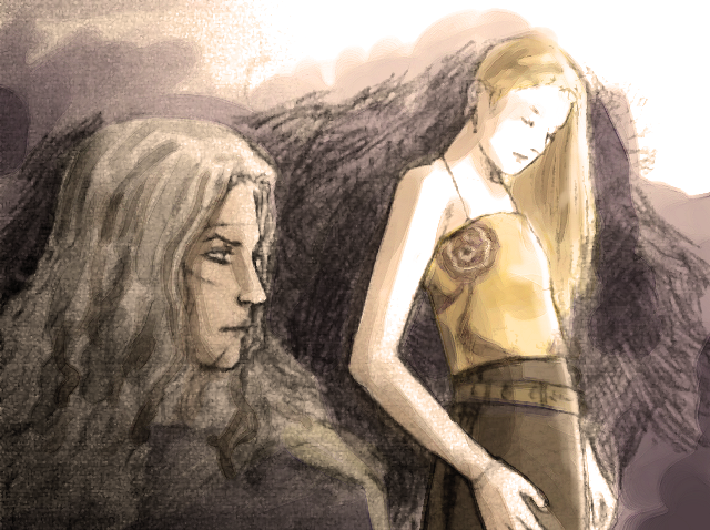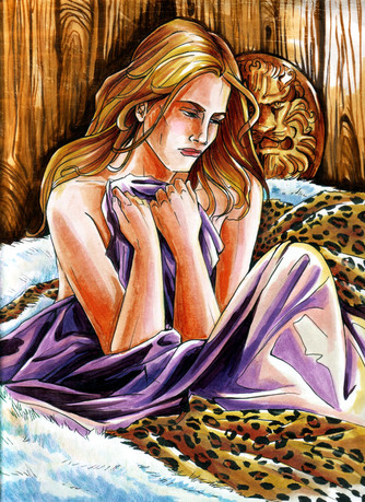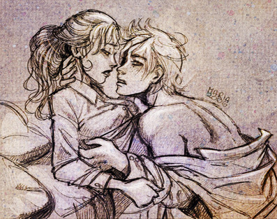 I always imagine Achilles very gentle/sweet and kind when it comes to Briseis. He valued her as his wife and not just some slave or prize, so I often like showing the affection he held for her. Showing that she meant more, and he would do what he could to keep her safe. Dawww.