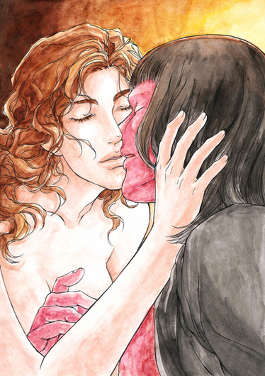 I love the way her eyes are closed - her vibe/expression fits so perfectly with the 'Protector' theme - and the way he's pressing his lips to her hair/neck... just wonderful.