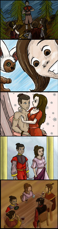 I really like how this piece came out! The bright colors, the nifty perspective, the Fire Nation clothing, the weapons! I just wish he were still around to enjoy this piece! Fabu work! Did you buy Volume IV yet, or are you waiting for the boxed set? Wal*Mart sold an exclusive action figure(of Aang) along with the DVD, in case you didn't already know!